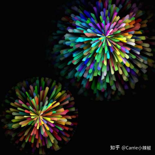 - 对新的色彩图层,使用 滤镜—扭曲—极坐标—平面坐标到极坐标,得到放射性烟花