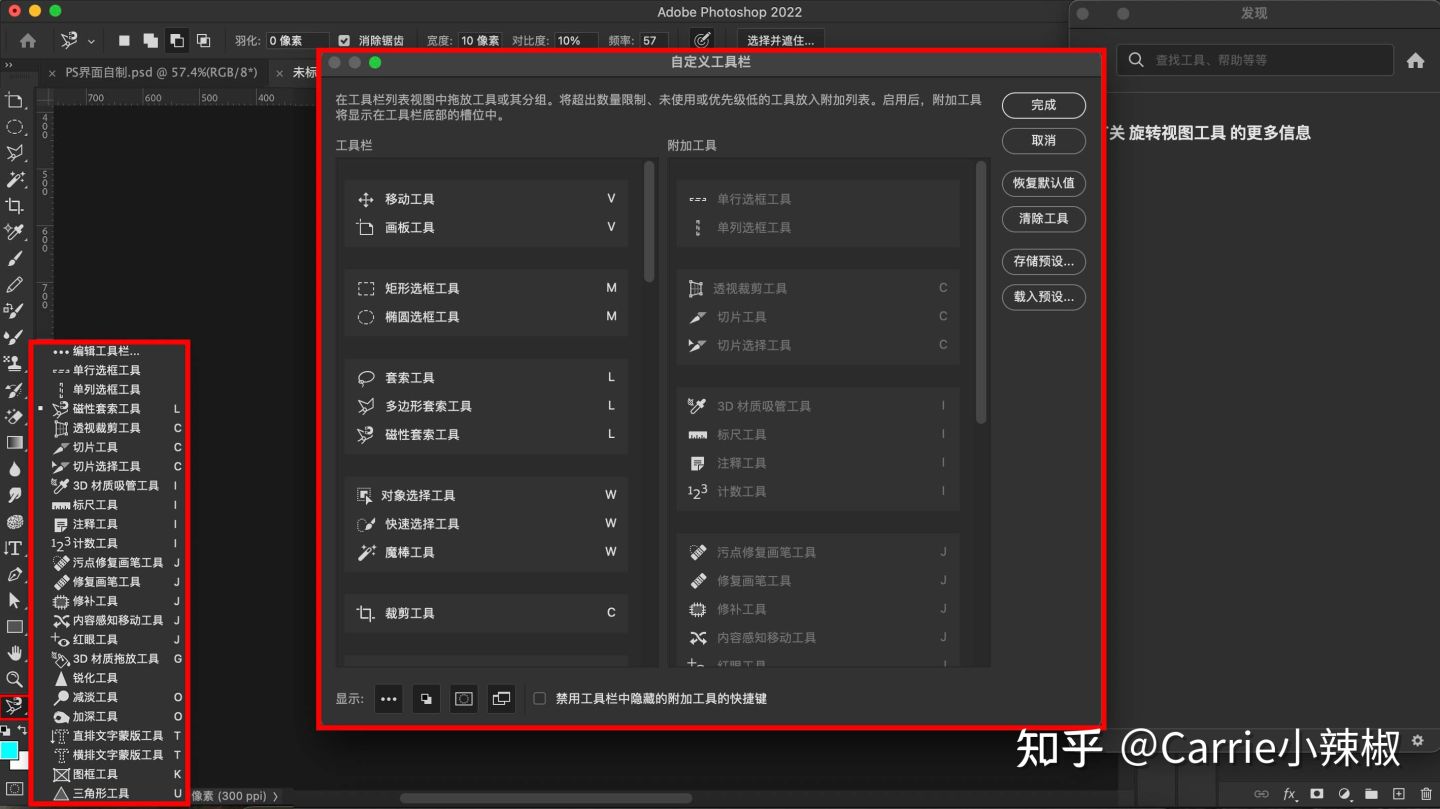 PS Mac 版的教程视频比较少,我先学习看的 win 版的教程,发现有的工具位置不一样,找不到的都在工具栏底部收起来了,找出来就行,不影响正常使用。