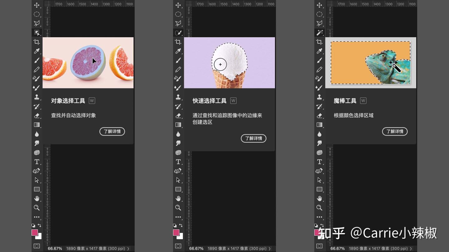 - 对象选择工具/快速选择工具/魔棒工具:更智能的选区工具