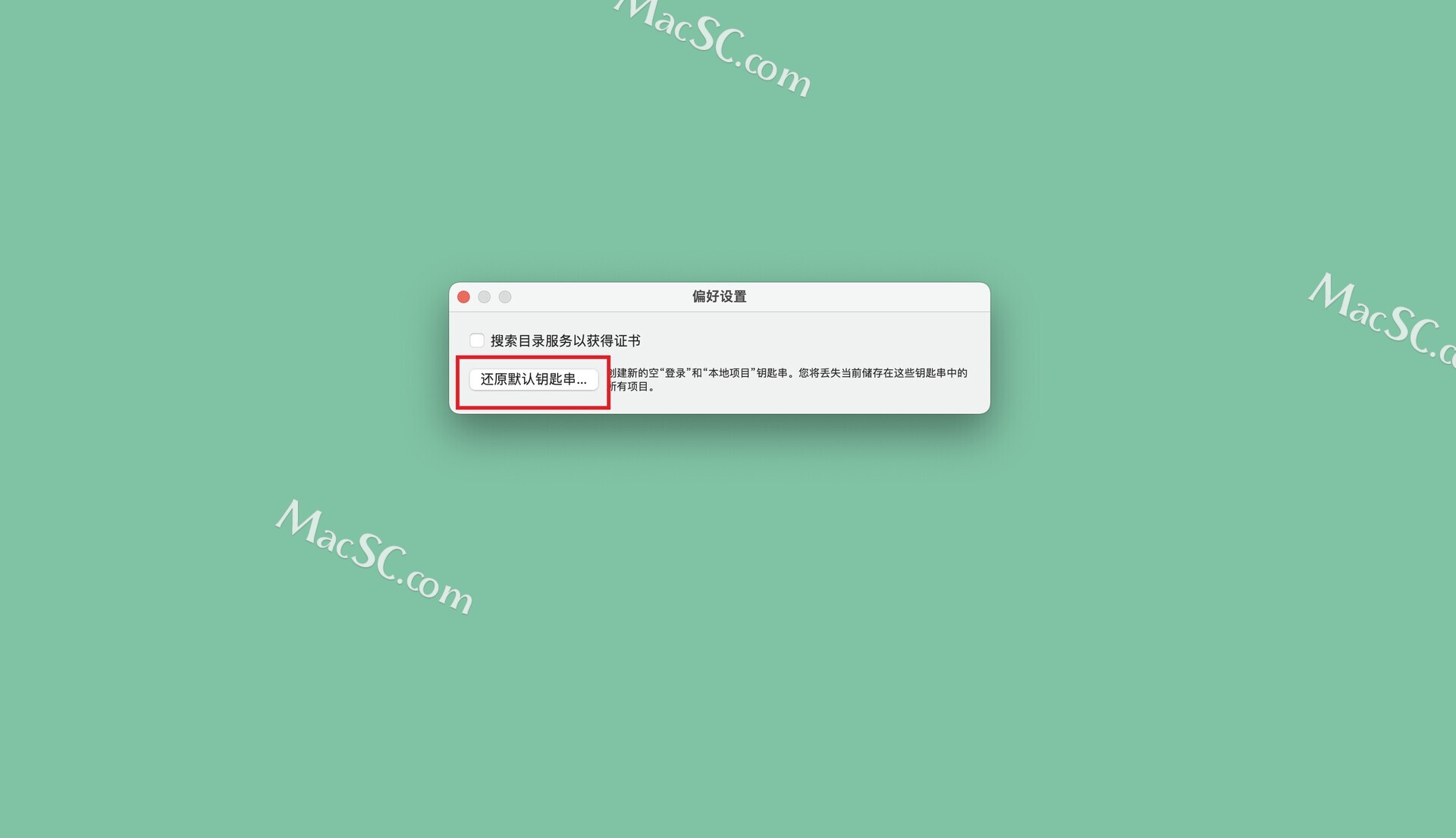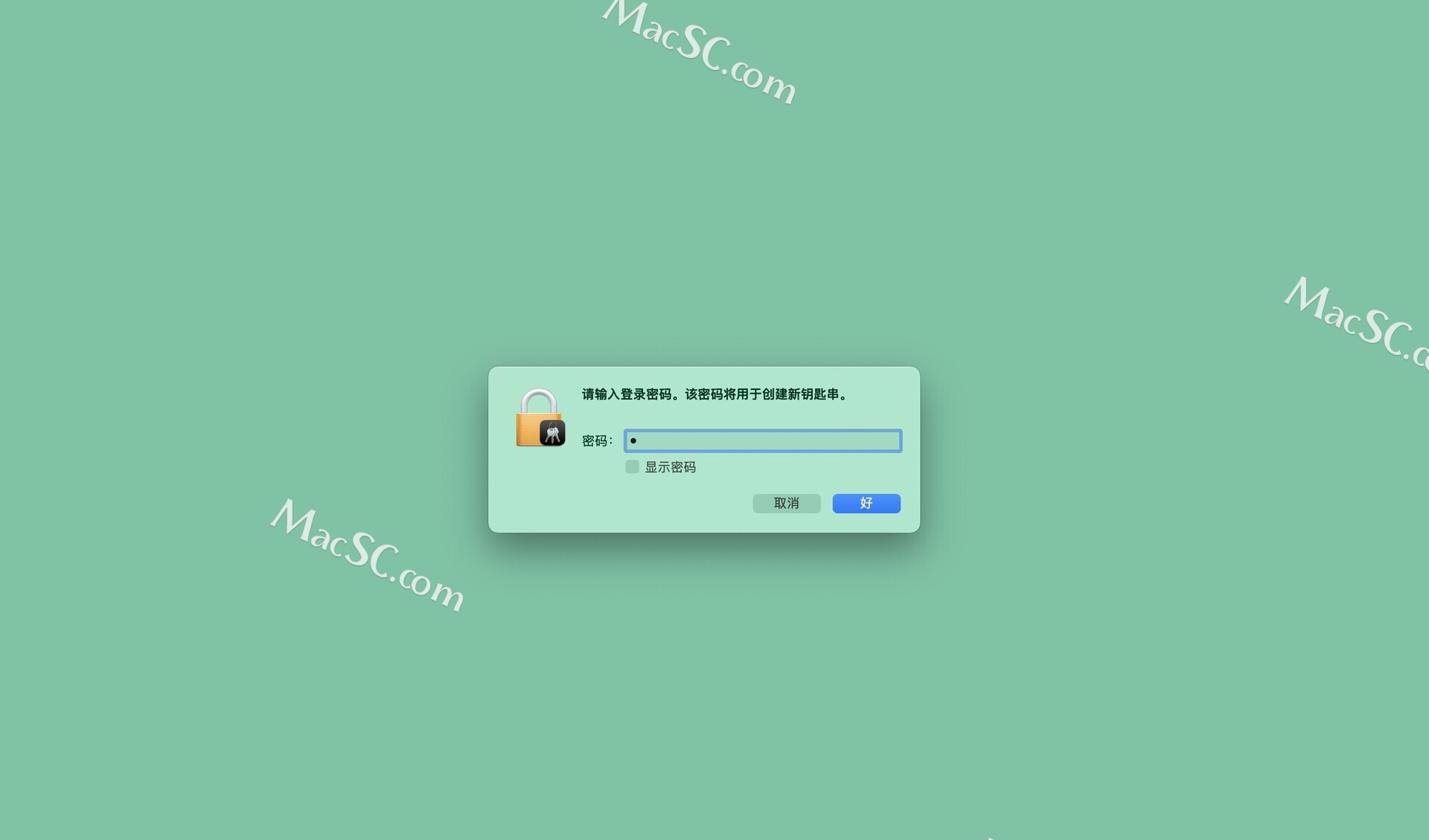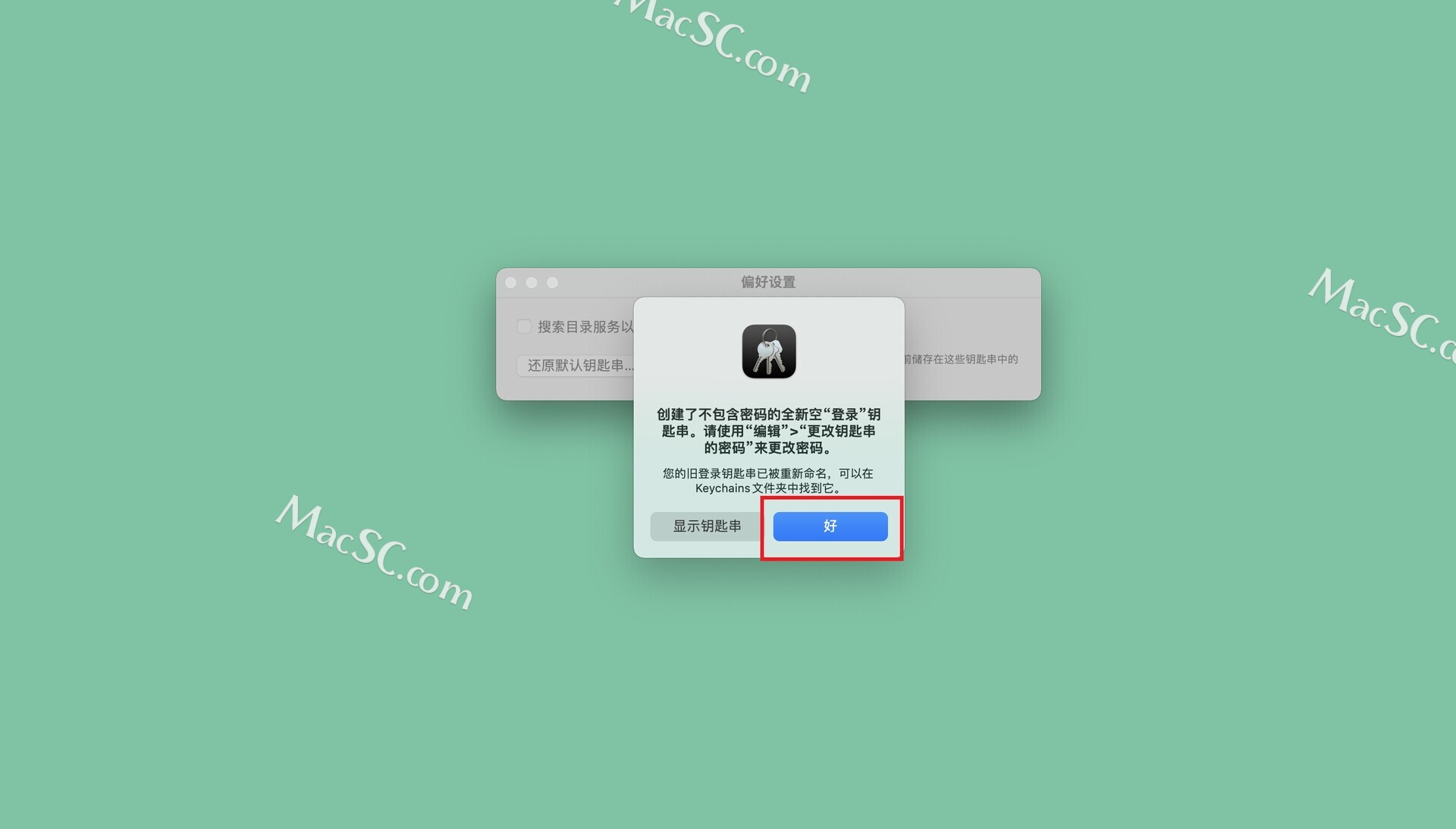 然后它会提示你输入一个新的钥匙串,并自动将之前的钥匙串重命名保留