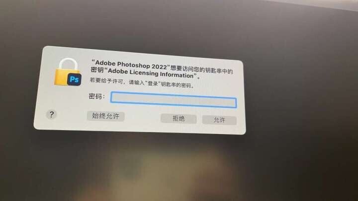 有些用户更新了新版的PS 2022,在运行过程中提示访问钥匙串密钥,如图