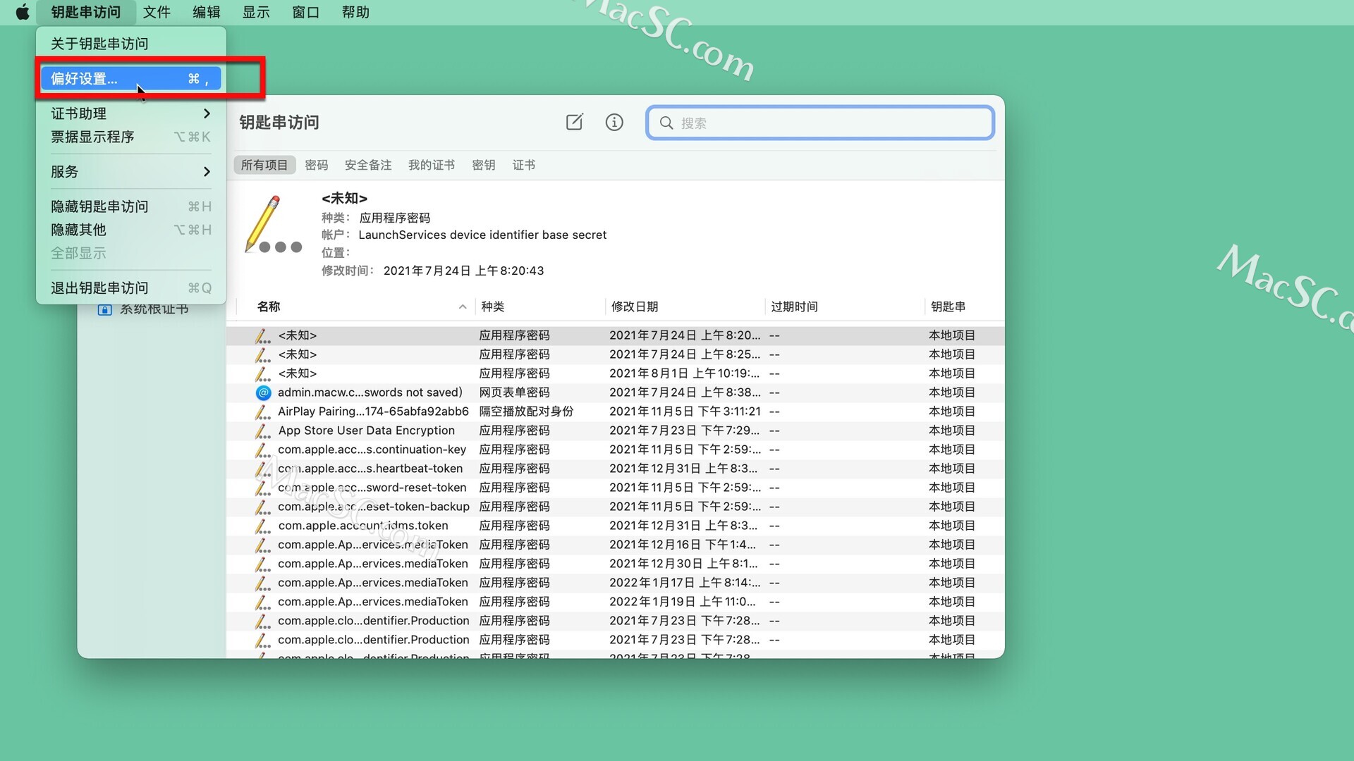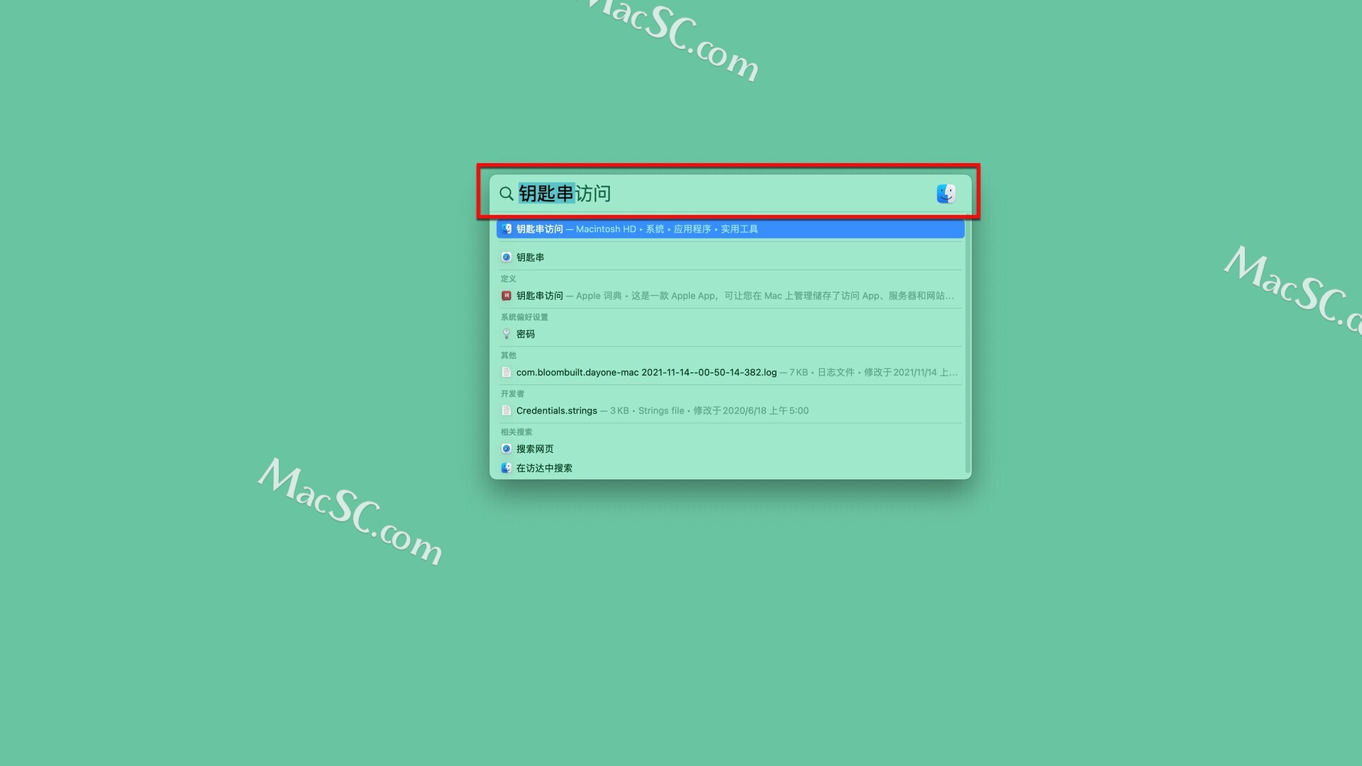 首先开机,然后无视钥匙串弹窗,快捷键command+空格键 ,输入钥匙串,回车