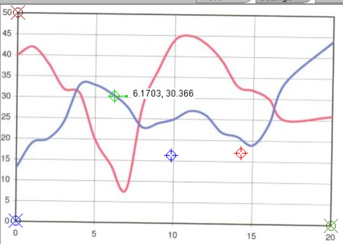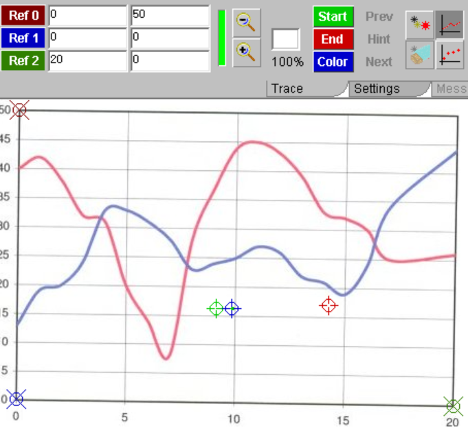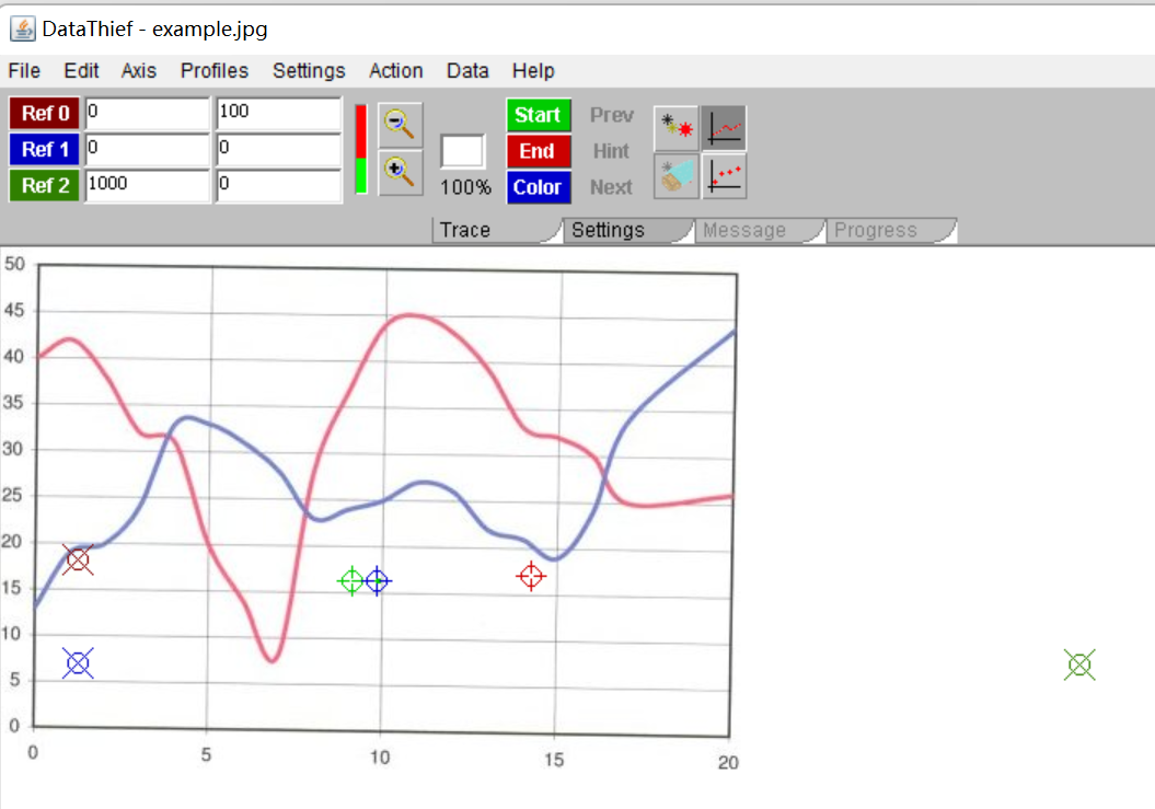 点击左上角的Ref0,对应点会闪烁,将其放在纵轴对应点,输入对应坐标。我这里放在最大值,输入(0,50)。同理将Ref2对应点放在原点,Ref2放在横轴最大值处,均输入对应坐标,最后效果如下: