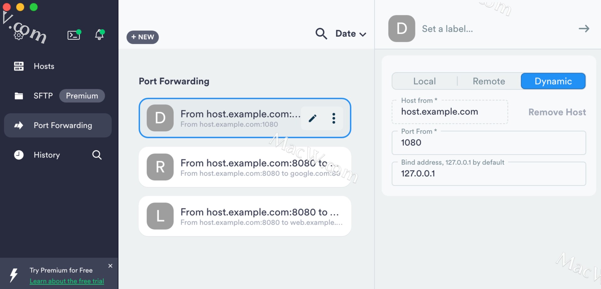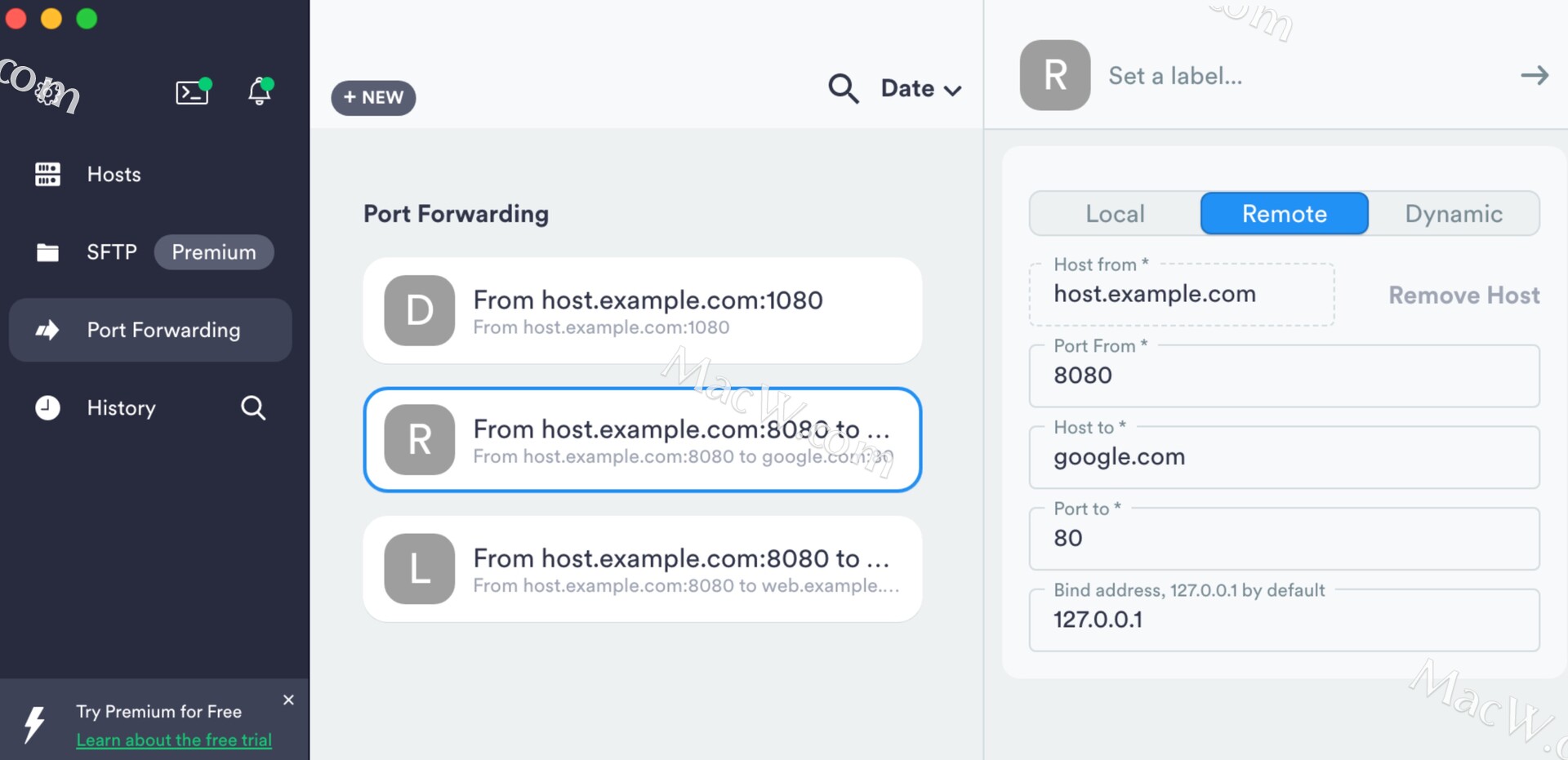 如何在 Termius 中添加带有端口转发的 ssh 命令(使用 -L、-R、-D)?本文提供了将ssh端口转发规则映射到 Termius 中的端口转发规则的命令片段示例。