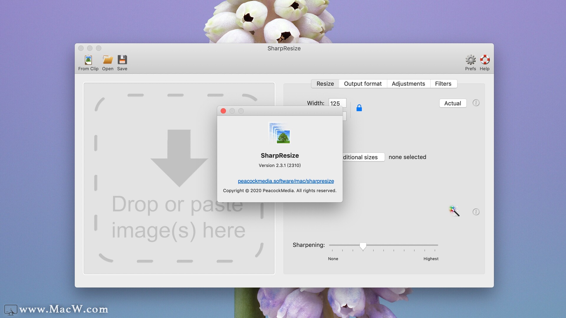 抓取图像的方法很多 - 从剪贴板,拖动到停靠图标,应用程序或别名,拖入SharpResize的图像或打开文件对话框。