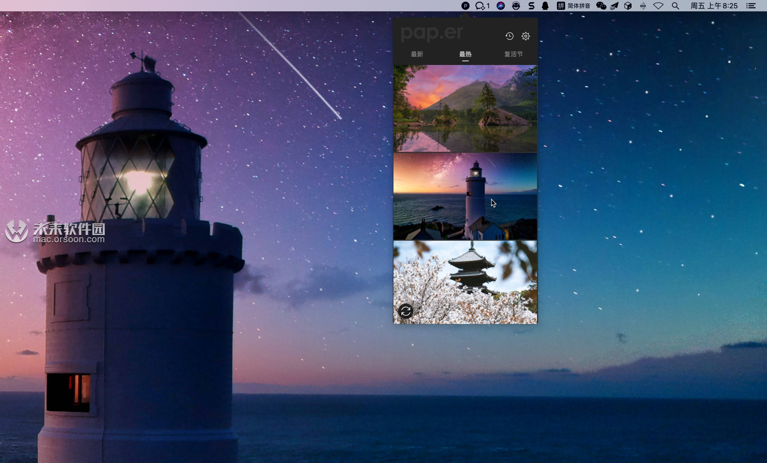 Pap.er Mac版提供每日更新的4K、5K高清壁纸,支持自动更换及下载保存,完全免费且无广告。