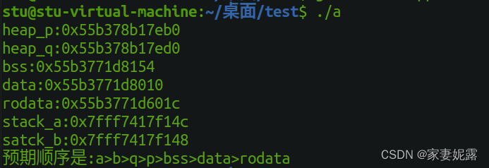 cout << "预期顺序是:a>b>q>p>bss>data>rodata" << endl;