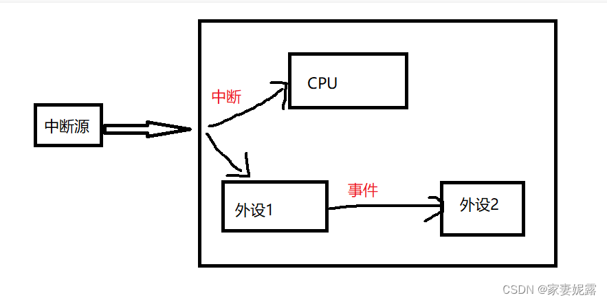 外部中断:由外部设备或硬件产生的中断。这些中断是来自处理器之外的信号,通常来自设备(如键盘、鼠标、定时器、IO 端口等)。我们平常说的中断是指外部中断。