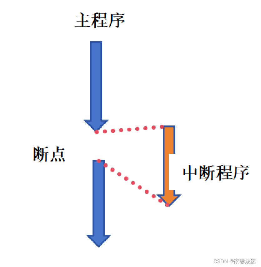 在主程序的运行过程中,当有特定的事件发⽣时,CPU暂停正在执行的程序,保留现场后⾃动地