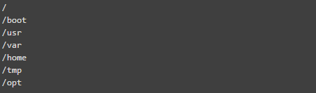 使用不同的分区很重要,对于可能得灾难,这可以保证更高的数据安全性。通过划分不同的分区,数据可以进行分组并隔离开来。当意外发生时,只有出问题的分区的数据才会被破坏,其他分区的数据可以保留下来。你最好有以下的分区,并且第三方程序最好安装在单独的文件系统/opt下。