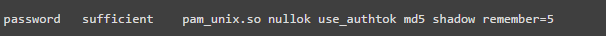 在 ‘password‘ 块添加下面一行,禁止用户重新使用其过去最后用过的 5个密码。