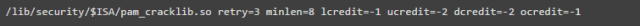 在文件中增加一行,使用认证参数(lcredit, ucredit, dcredit 或者 ocredit 对应小写字母、大写字母,数字和其他字符)