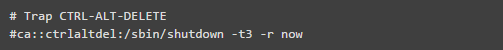 这个配置是在‘ /etc/inittab‘文件,如果你打开这个文件,你可以看到下面类似的段落。默认的行已经被注释掉了。我们必须注释掉他。这个特定按键会让系统重启。