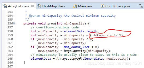 右移jdk源码中也有使用,例如ArrayList的扩容部分