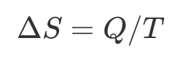 对于可逆的热力学过程,系统向温度为 T 的热源转移数量为 Q 的热量,那么系统中熵的变化ΔS 可以写成: