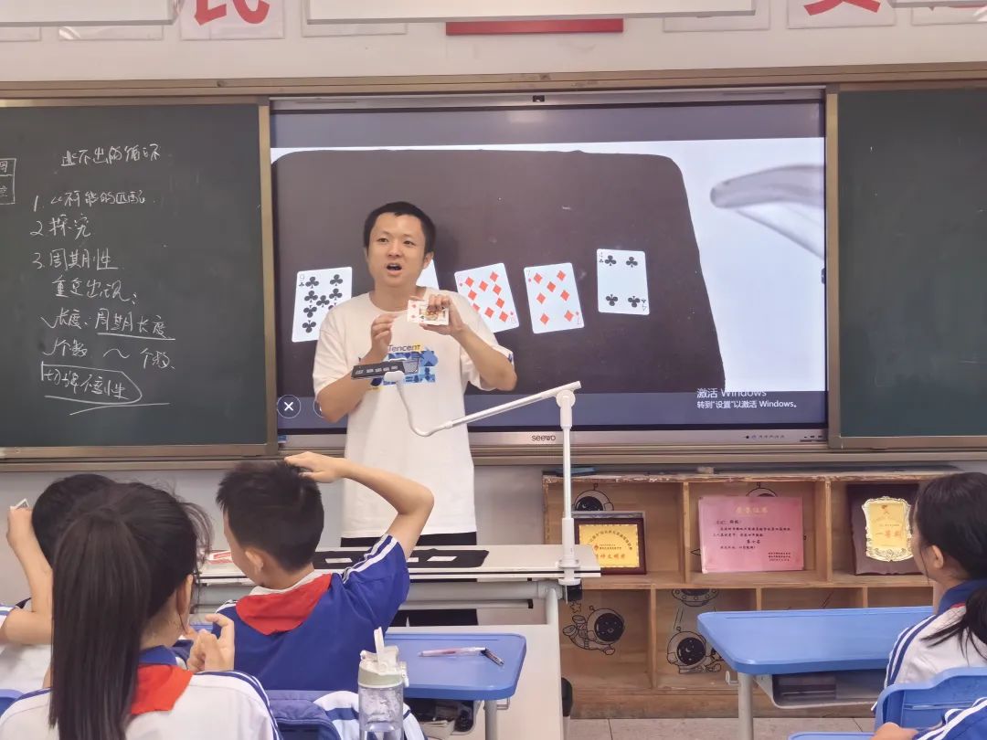 到了6-8班的教室,仿佛又回到了熟悉的地方。于是我拿着刚讲座剩下没演的2个魔术加上例行的表演,以及周期性的新案例《不可能的匹配》,顾不上探究的细节,沿用周期性本身的讲解内容,就直接讲了起来。