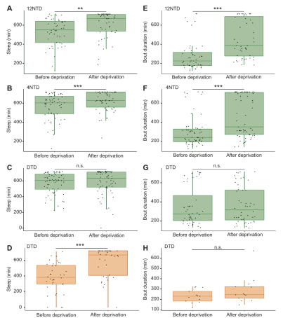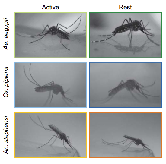 随后科学家对不同种类的蚊子进行了睡眠剥夺实验,以观察随后的睡眠反弹情况,也就是所谓的补觉。科学家利用振动刺激来干扰蚊子睡觉,就好比楼上装修吵得你睡不着一样。结果发现无论在实验室还是野外,被睡眠剥夺的蚊子吸血行为都会减少,失眠的蚊子宁可补觉也不愿吸血。更有趣的是,对于像埃及伊蚊这种白天活动的蚊子,白天的睡眠剥夺并不会影响它的吸血活动,而对于斯氏按蚊这种夜猫子来说,白天不让它睡觉的确会降低它晚上吸血的欲望。