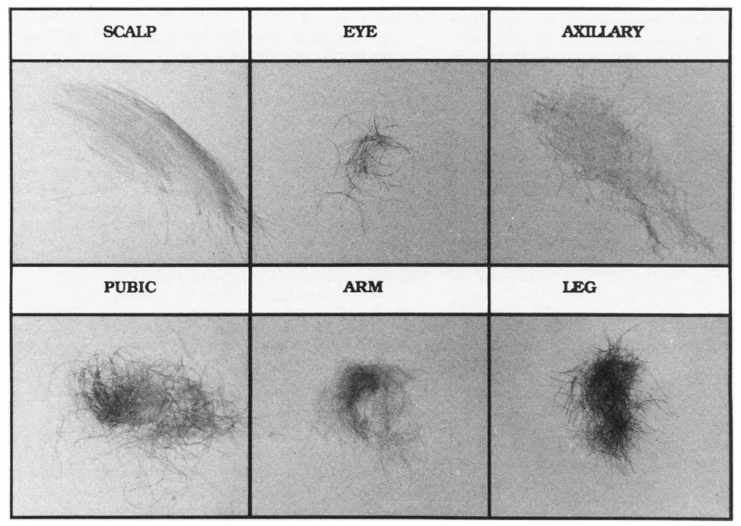 图11. 基因突变者的毛发样本,可以看到颜色并不均匀