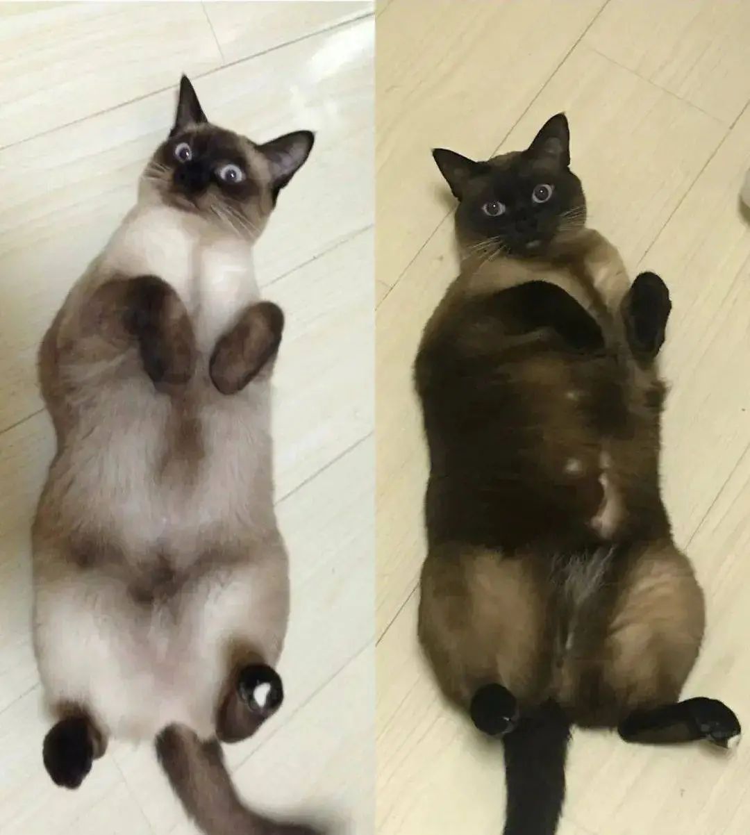图9. 同一只暹罗猫在夏天和冬天的照片,猜猜哪张是夏天拍的?