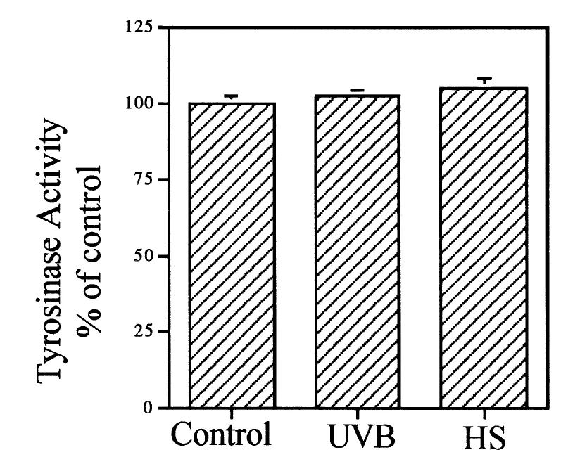 在1998年发表在The Society for Investigative Dermatology上的一篇论文[1]中,研究者对他们培养的单层上皮细胞/黑色素细胞进行了连续几天每天在42℃环境下暴露1小时的热处理,并将结果与经过一定剂量UVB照射的样品,以及未经处理的样品进行了对比。