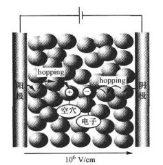此后,被注入有机膜的电子、空穴等电荷,会以分子间 “跳跃” 的运动形式,朝着对面的电极方向移动。