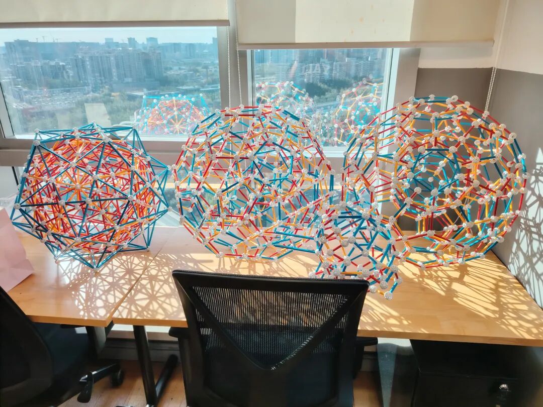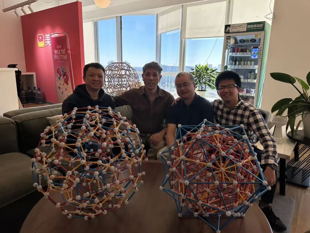 原本意犹未尽的聚会本以为到当晚席散总该结束了,没想到第二天偶然约到的rick公司的会面,竟然不约而同地又遇见了王大数、应老师和马哥。嗨,这相似的人总会有相似的规划。大家一起参观了这个中国Zometool总部,一边欣赏着Rick公司的这些数学艺术品,一边随意畅聊。甚至还都不约而同地11点左右各自飞机地铁地离开了。