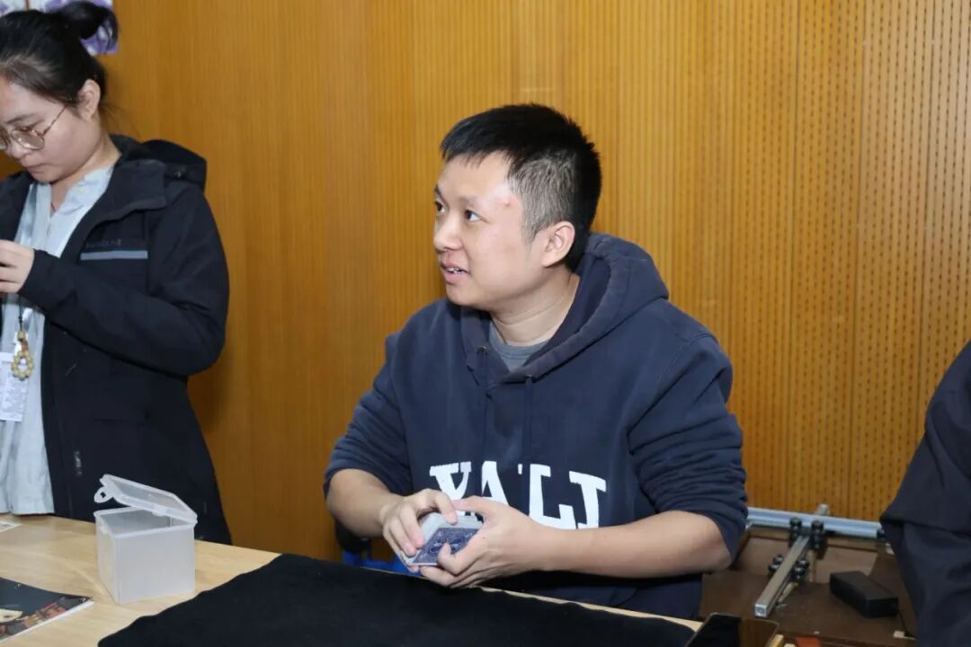活动前特地问武老师要了一张桌子的场地,在下午4点讲座结束后就如约开始即兴表演了。之前对即兴表演还不那么感冒,因为这种环节中人流攒动,数学魔术不太好抓眼球和注意力。不过人贵在用心了,自后来陆续准备和恢复出适合即兴表演的作品清单,以及把它们基本按顺序在脑中活跃以后,那一个个的就水到渠成了。