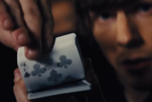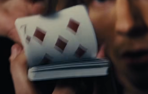 如果我们看画面最初,可以看到牌堆中有几张是额外凸出来的,那么大概率就是方片七,这是为了后续方便将方片七藏起来做的小手脚,这样等你选完魔术师展示牌堆,问你选择的牌在不在我展示的牌里,来确认自己是否暗示成功。