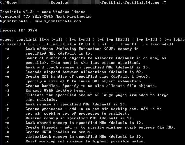 介绍一个测试Windows极限的工具TestLimit,这个玩意功能挺多的,可以探测Windows系统物理内存,虚拟内存,分页&非分页内存,进程&线程,句柄,用户对象和GDI资源等的极限,这里用来探测一下内存的极限。以后有空了可以聊聊Windows其它一些系统资源的极限情况。