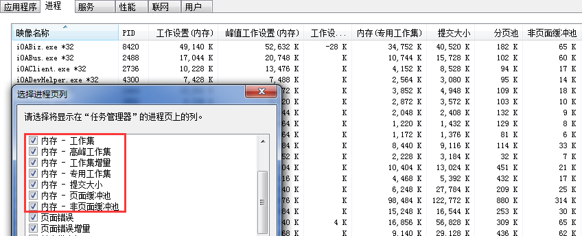 2、把所有的"工作集"相加后的值会大于任务管理器中提示的物理内存的使用值,因为工作集包含了共享工作集,这部分数据会重复计算。但是如果你只把专用工作集全部加起来又会发现小于任务管理器中提示的物理内存的使用值,因为你完全没有计算共享工作集。