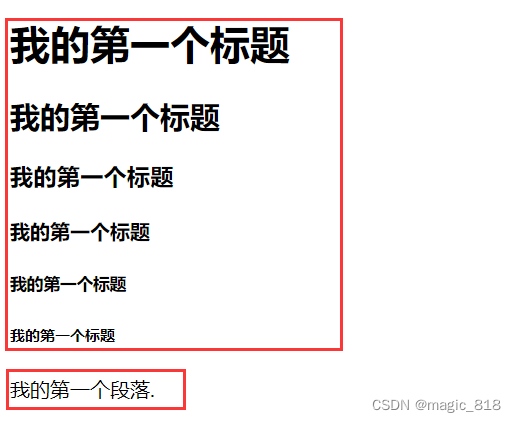 <h1> 元素定义一个大标题(标题等级分为六级,即h1-h6)
