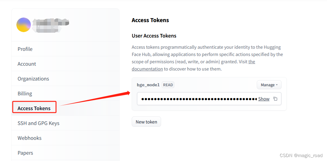 # 注意:“在hugging face上生成的 自己的access token, 否则模型下载会中断”