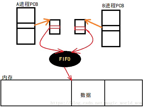 通过命令mkfifo或函数mkfifo()来创建一个管道文件FIFO,通过对管道文件的操作从而实现对内存空间上的数据流进行传输。