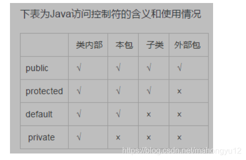 注:JDK 1.8 以后,接口允许包含具体实现的方法,该方法称为"默认方法",默认方法使用 default 关键字修饰。更多内容可参考 Java 8 默认方法。