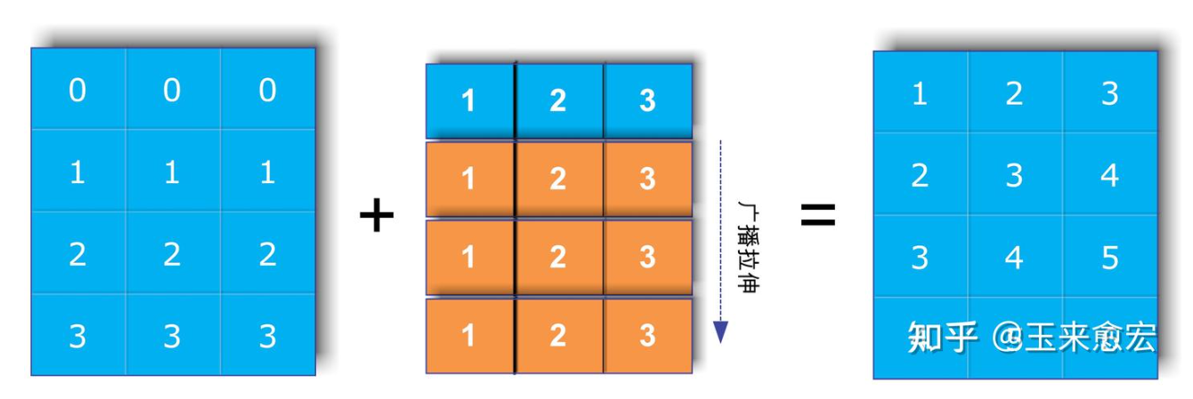 广播机制:两个Tensor右对齐后每一个维度的长度要么相等,要么有一个为1,要么有一个Tensor维度不存在,这样才可以开启广播机制。