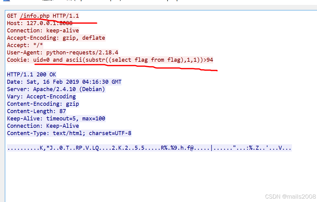 通过跟踪流发现关键词,python,直到这里,发现是bool盲注