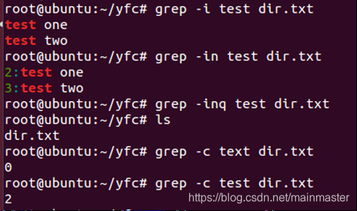 grep -I test dir.txt 查找dir.txt 文件中包含字符test的行