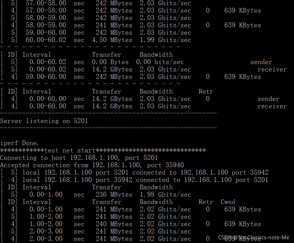 iperf3 -c 192.168.1.100 -i 1 -t 60