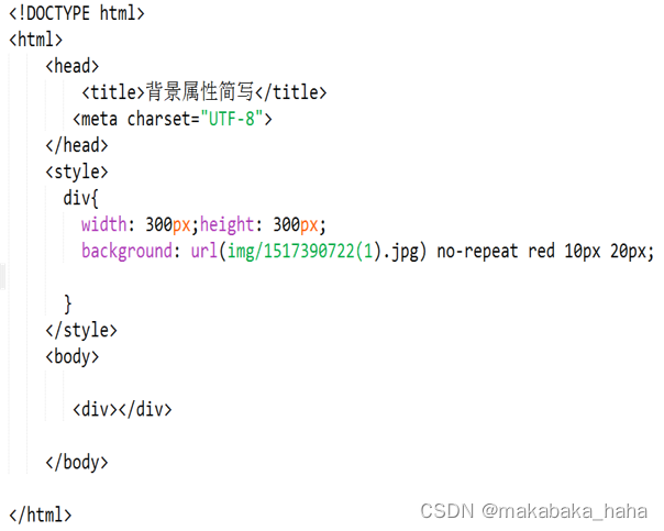 background:图片地址,图片重复方式,背景颜色,背景定位