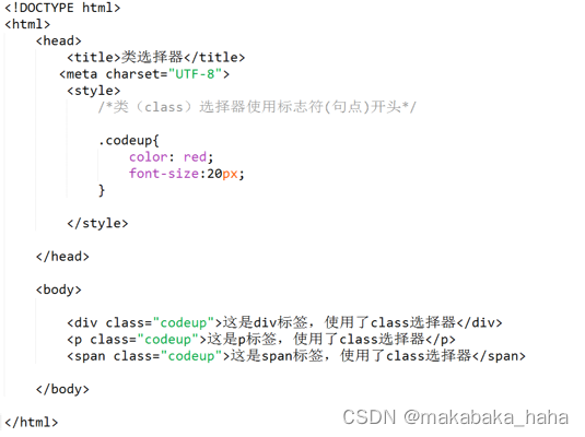 类(class)选择器使用标志符(句点)开头,类(class)选择器使用标志符(句点)开头
