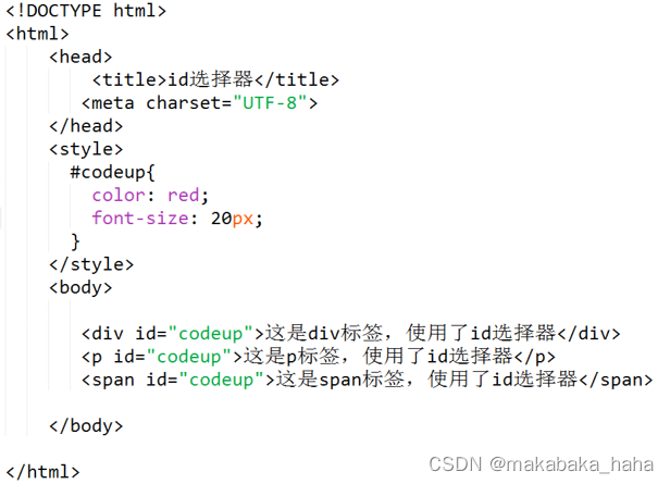 id选择器定义:body标签中的所有标签都有id属性。body标签中的所有标签都有id属性。
