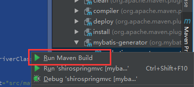 4、使用maven运行mybatis-generator-maven-plugin插件:工程名->Plugins->mybatis-generator->mybatis-generator:generate->Run Maven Build