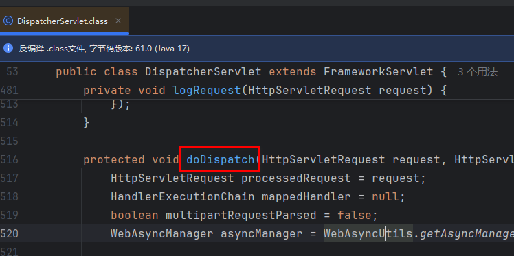 第二步:Spring MVC中的DispatcherServlet接收到请求
