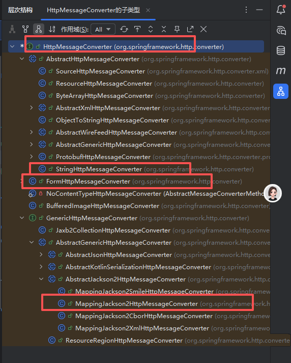HttpMessageConverter是一个接口,SpringMVC为我们提供了丰富的实现类,每个实现类都具有独特的转换特性。
