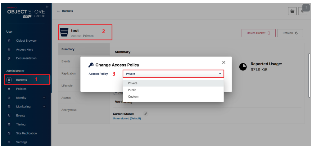 如上图所示,可选的访问权限共有三个选项,分别是Private、Public和Custom,具体说明如下