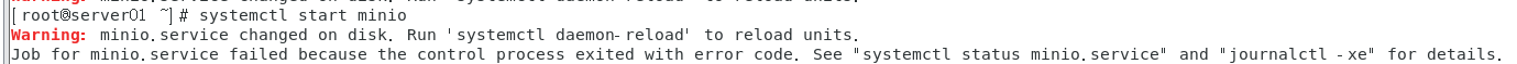 如果执行systemctl start minio报错如下: