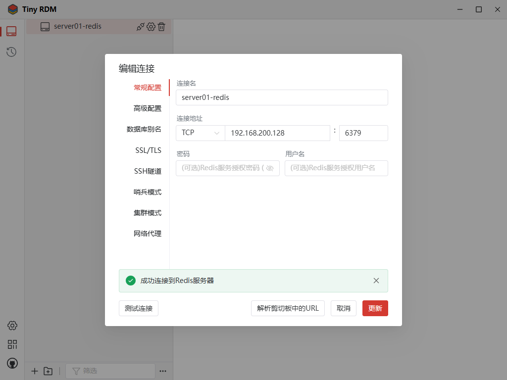 图形化客户端有很多,我这里使用的是Tiny RDM