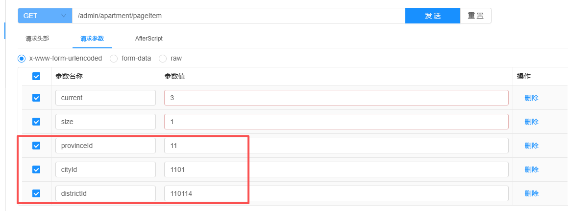 6. 根据区县ID查询公寓信息列表