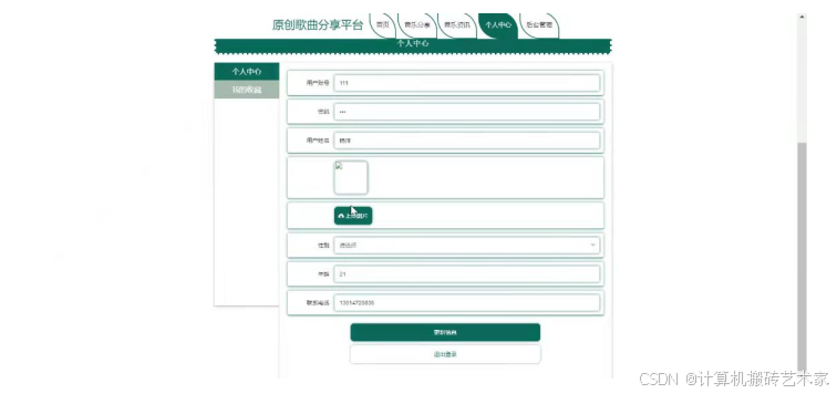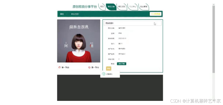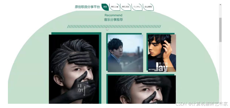 - 系统功能包括首页,个人中心,用户管理,音乐分类管理,音乐分享管理,举报管理,平台管理等功能模块。