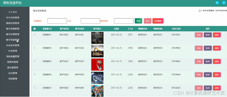 图5-4 教学资源管理界面